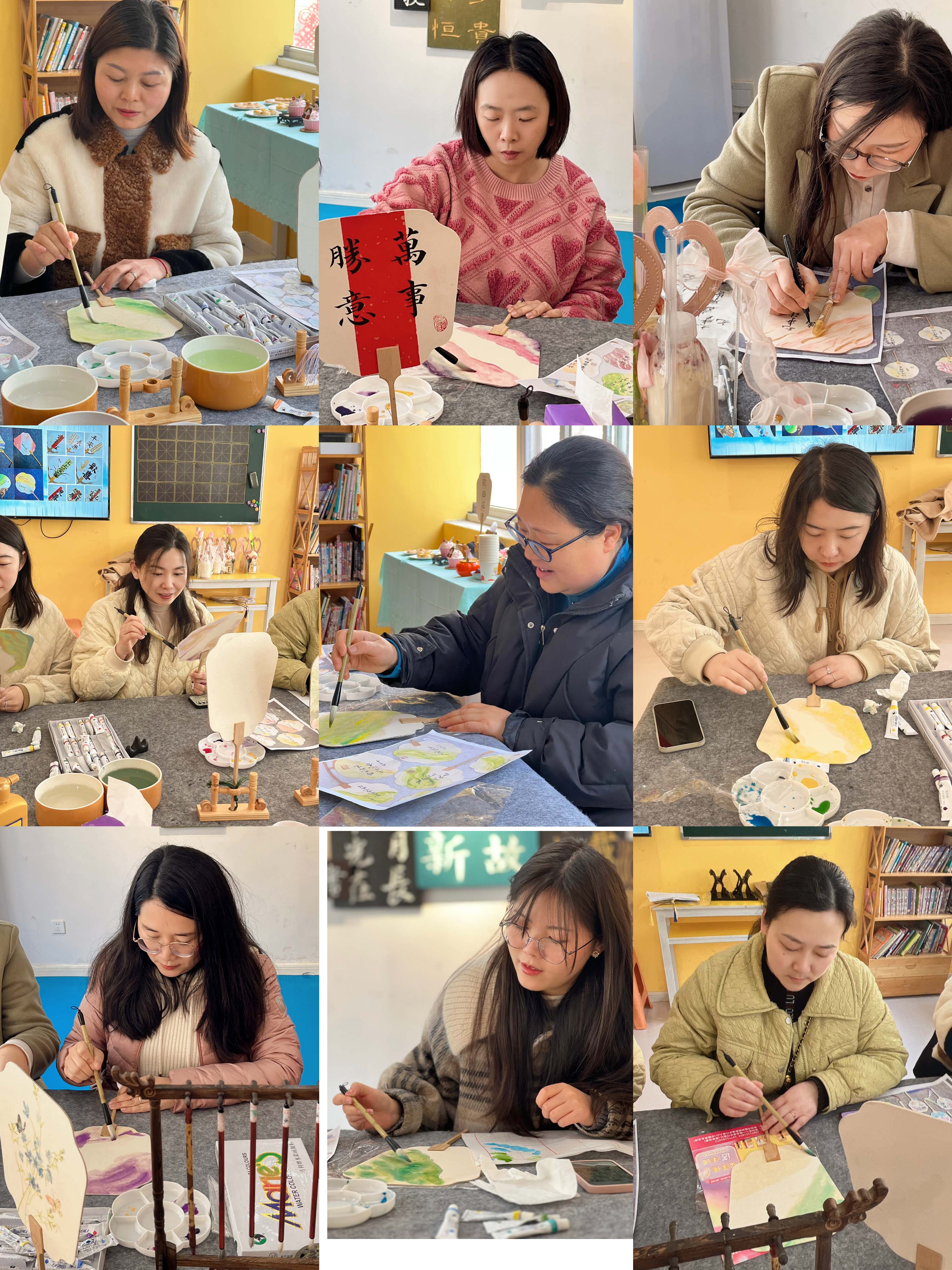 活動(dòng)開(kāi)始前,老師先向大家介紹了團(tuán)扇的文化背景及制作方法。隨后向大家發(fā)放了空白扇子、毛筆和顏料等各種輔料工具。大家躍躍欲試,白描、運(yùn)筆、上色,忙得不亦樂(lè)乎。活動(dòng)中大家熱情高漲,相互借鑒學(xué)習(xí),現(xiàn)場(chǎng)充滿(mǎn)歡聲笑語(yǔ)。原本一片空白的團(tuán)扇,在大家精心制作下變成了一把把色彩斑斕的“藝術(shù)品”。